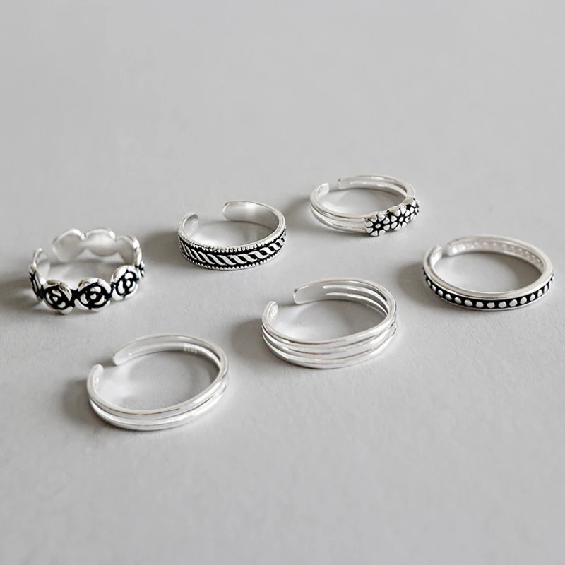 New 100% S925 sterling silver ring female models sweet Korean version of the retro Thai silver birthday