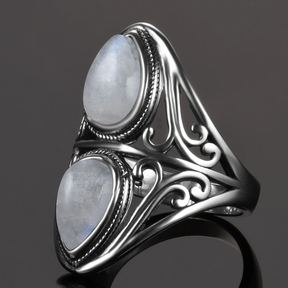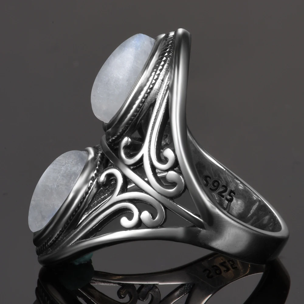 Best 925 Sterling Silver Rings Original Design Vintage Natural Rainbow Moonstone Ring For Women Men Fema
