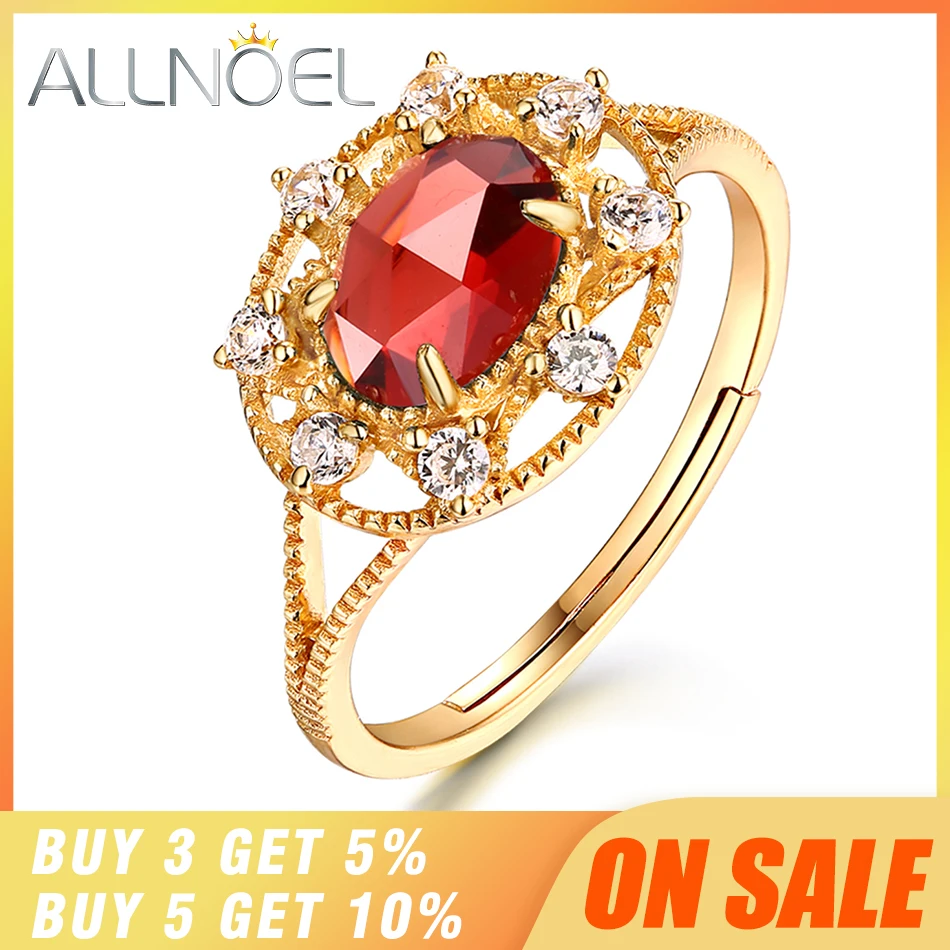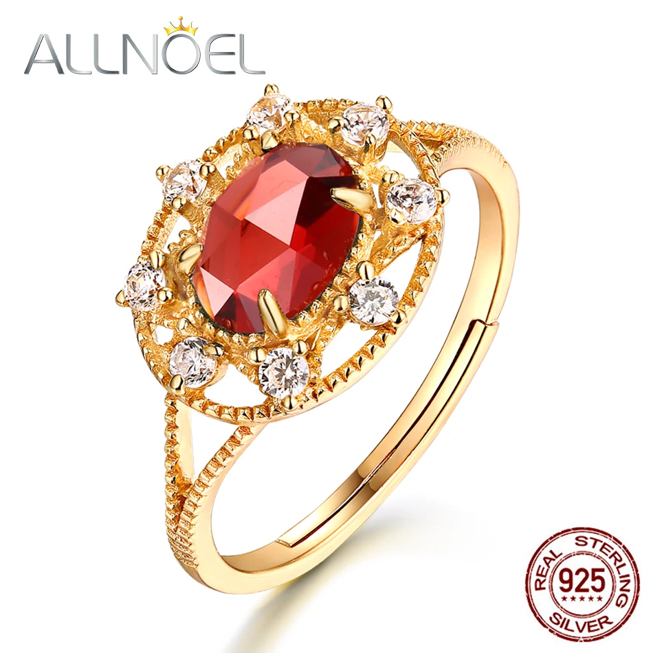 Buy ALLNOEL Silver 925 Jewelry Moissanite Ring Handmade Gemstones Garnet Antique Luxury Brand 925 Sterl