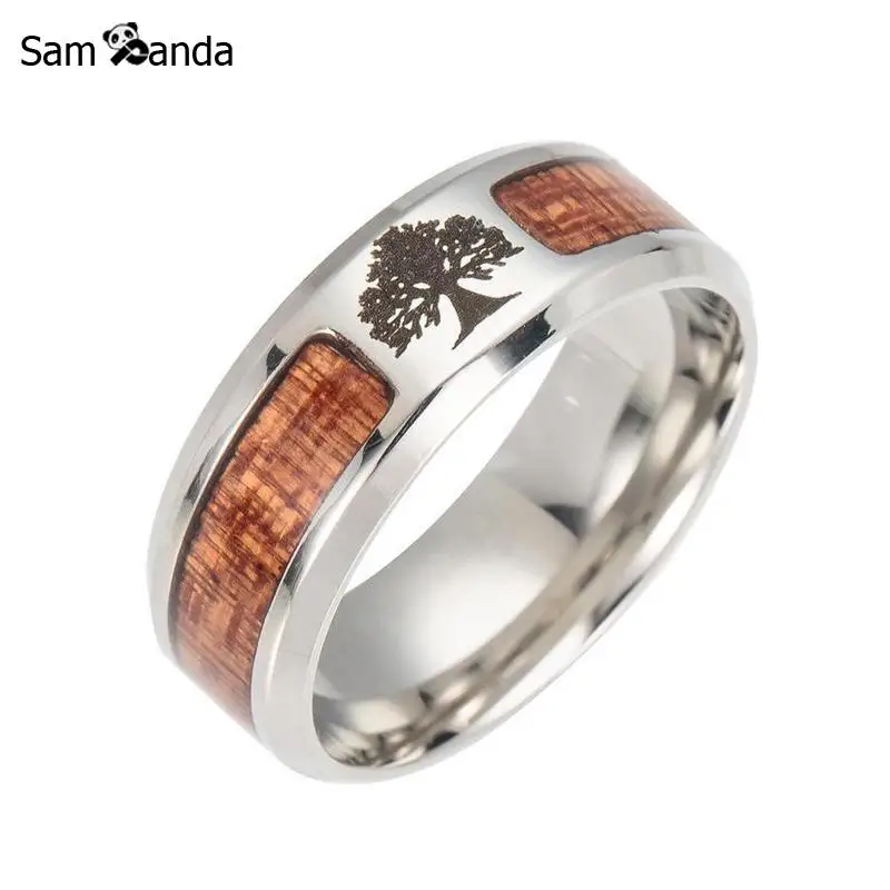 New New Nordic Vikings Runes Amulet Life Tree Ring Men Stainless Steel Mosaic Wood Semi-circle Rings Fo